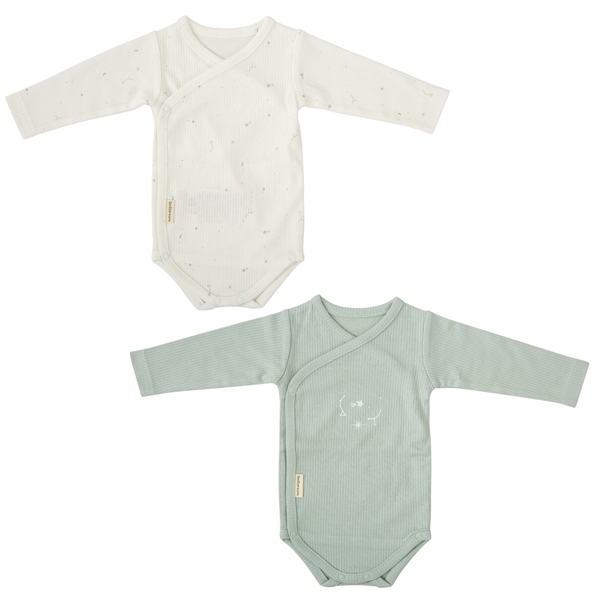 Dětské body s dlouhým rukávem BIMBIDREAMS Orion, balení 2 ks. Velikost 1M (0–1 měsíc). Měkká a prodyšná bavlna šetrná k citlivé dětské pokožce. Praktické zapínání na patentky usnadňuje oblékání i přebalování.
