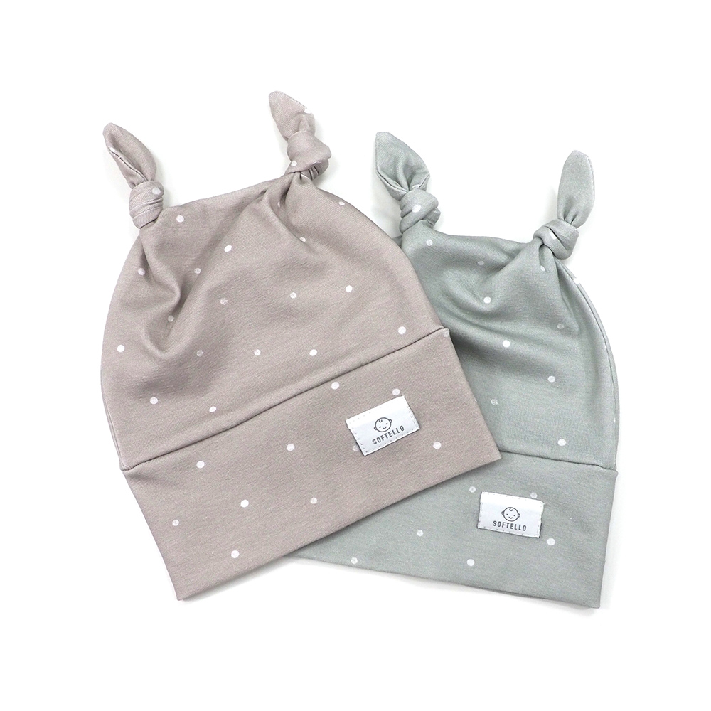 Čepička SOFTELLO se 2 uzlíky (0–3 měs.) – šedohnědá tečka