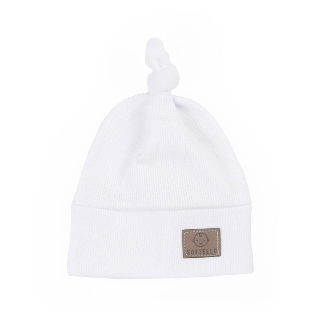 Čepička SOFTELLO s uzlíkem – bílé pletené wafle