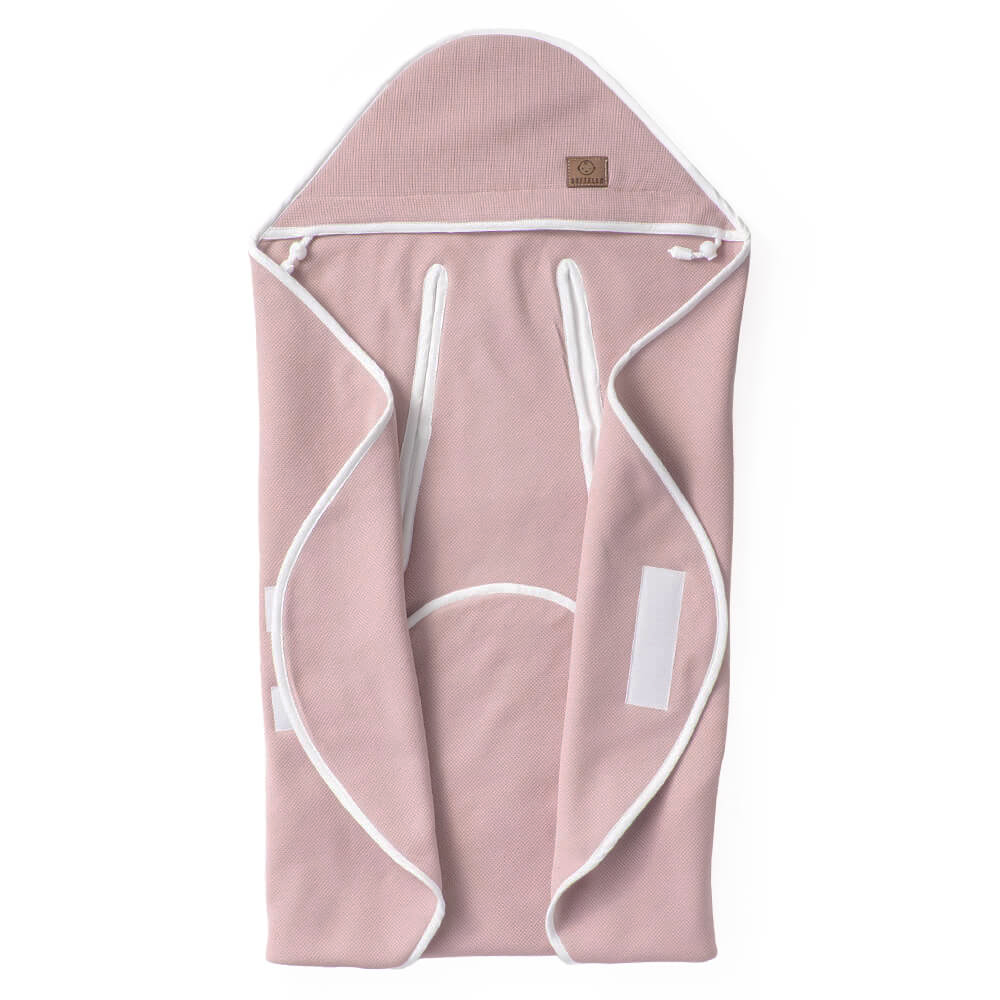 Praktickým řešením je gumička v rohu přikrývky, kterou stačí převléci přes středovou upevňovací část pásu – díky tomu se deka nesklouzne a miminko se neodkope. Oceníte ji zejména při přenášení dítěte zvenčí do auta nebo během chladnějších dnů.