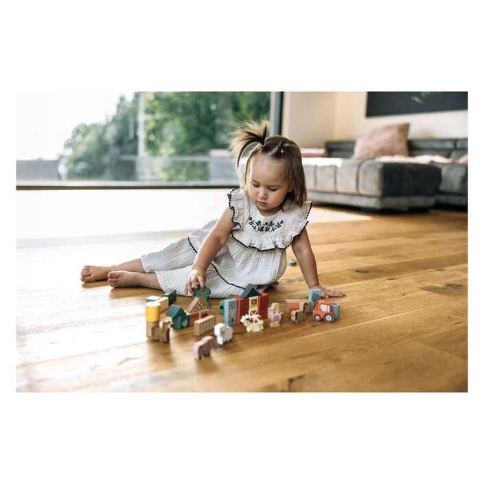 Zažijte život na farmě plný fantazie a zábavy! Vaše dítě se ponoří do světa tvořivosti a objevování – postaví si vlastní farmu se zvířátky, traktorem a vším, co k ní patří.