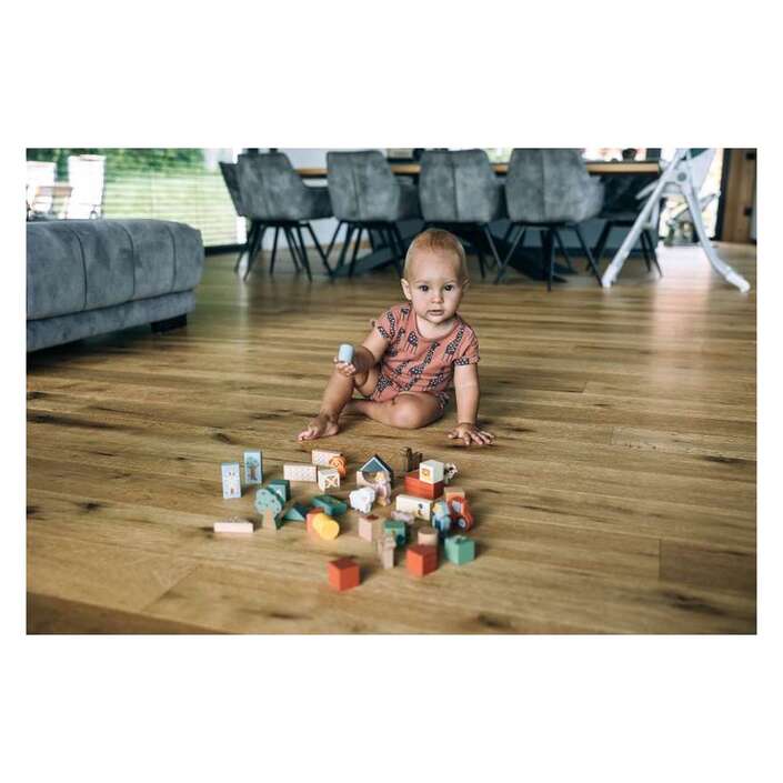 Sada obsahuje 36 kvalitních dřevěných kostek v různých tvarech a barvách, které podporují představivost, logické myšlení a motorické dovednosti.
