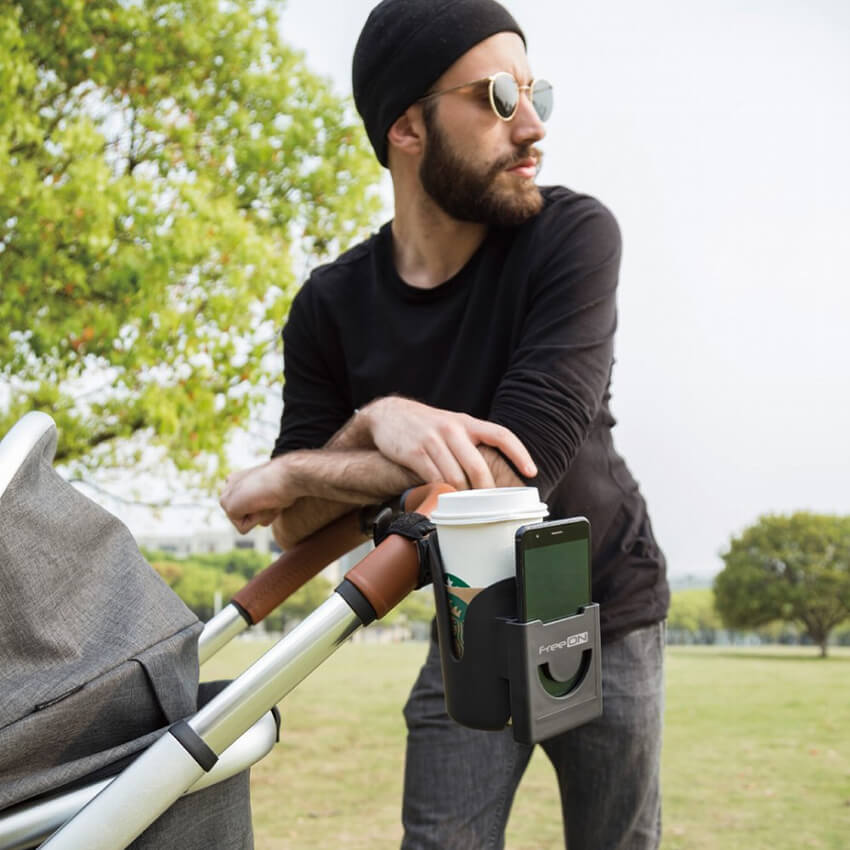 Držák na láhev a telefon od zn.FreeON je univerzální a vhodný pro všechny kočárky. je výborným a praktickým pomocníkem pro každou maminku. Díky němu budete mít váš telefon vždy poruce a nezapomenete ani na dodržování pitního režimu během procházek.
