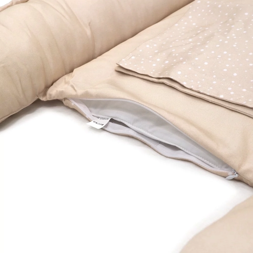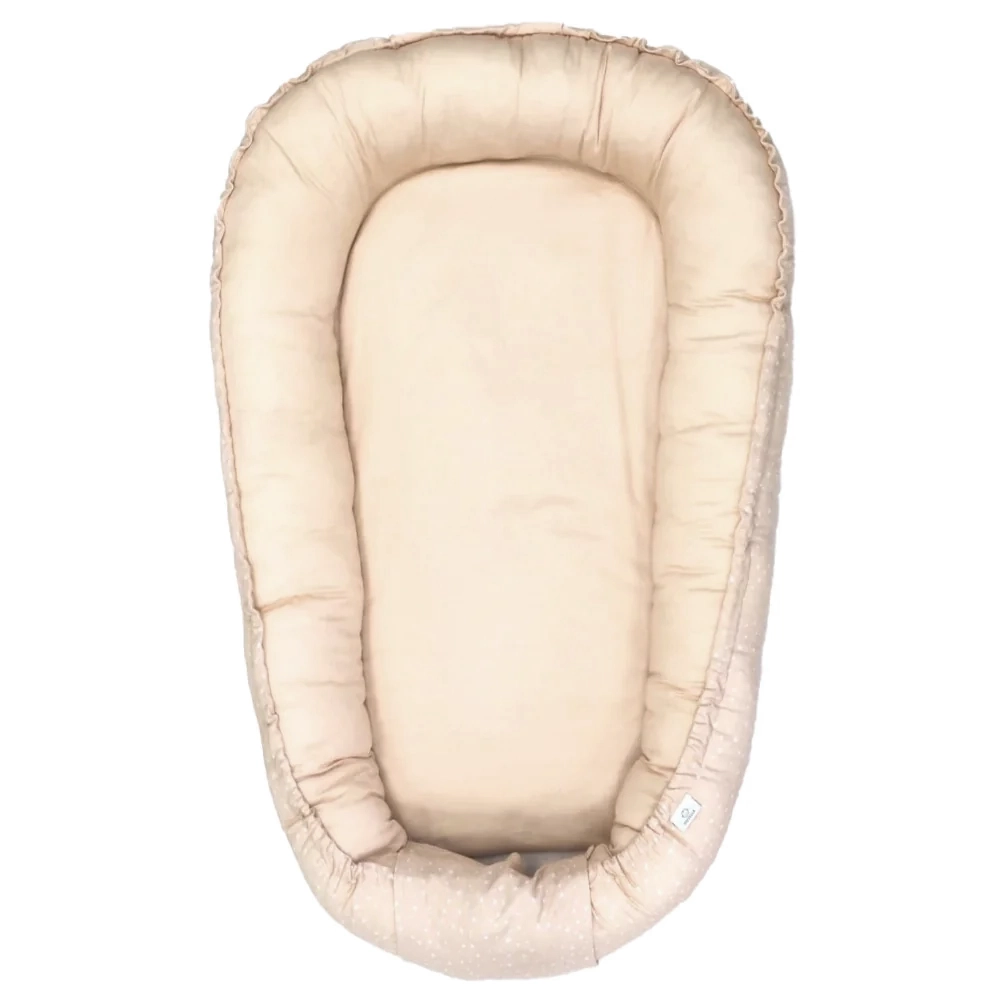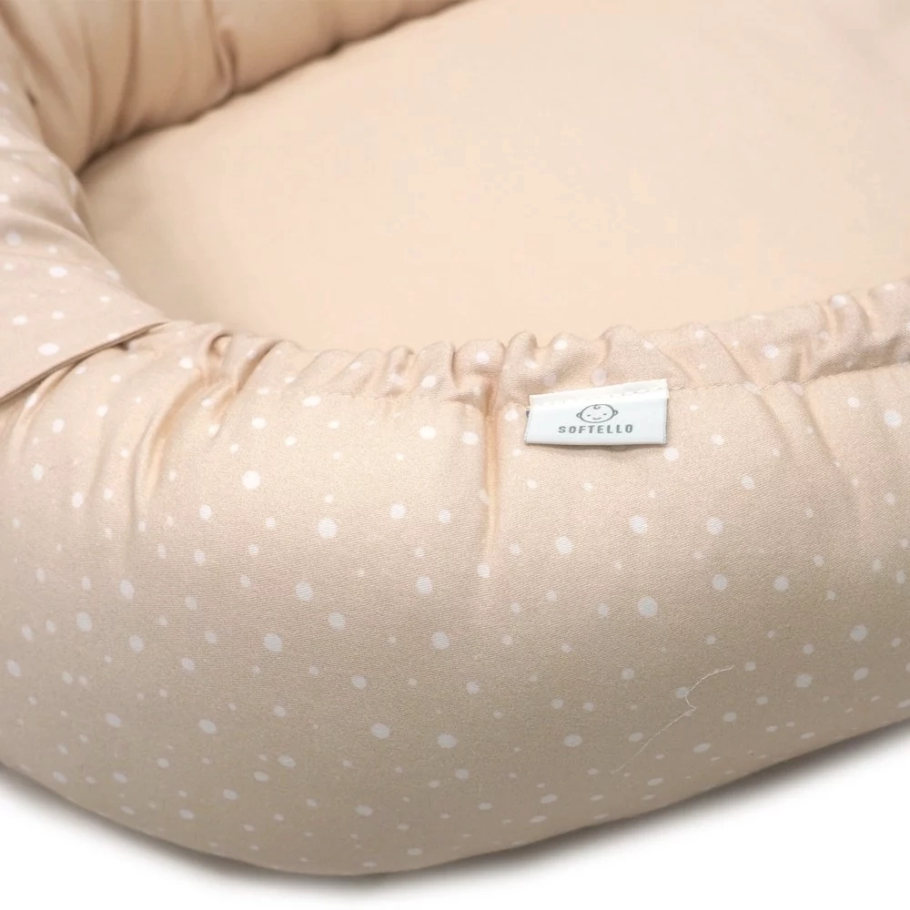 Hnízdo pro miminko SOFTELLO – béžová tečka MIX je ztělesněním pohodlí, bezpečí a nadčasového designu. Vyrobeno z prémiového bavlněného saténu s naším originálním designem. Tento výjimečný materiál je v porovnání s klasickou bavlnou výrazně jemnější, hebčí a příjemnější na omak, takže vaše miminko se v něm bude cítit doslova jako v bavlnce.