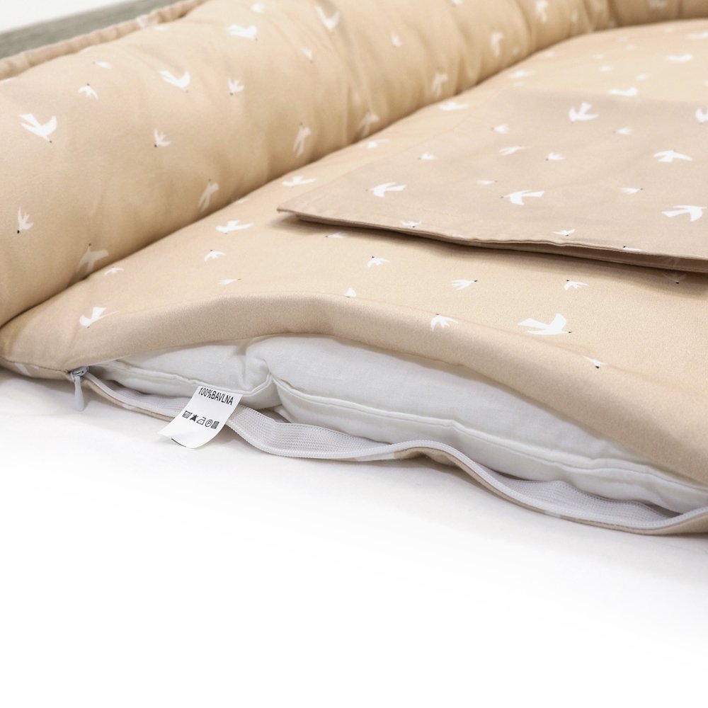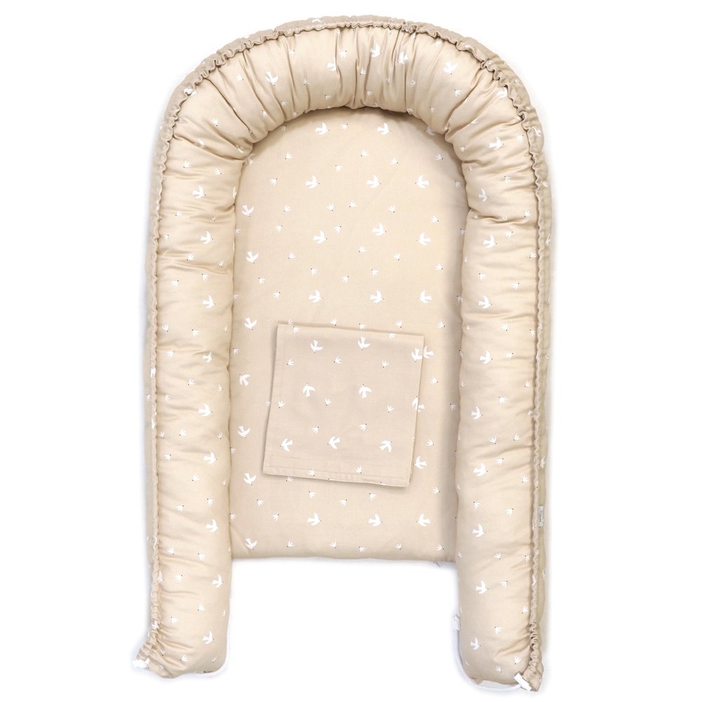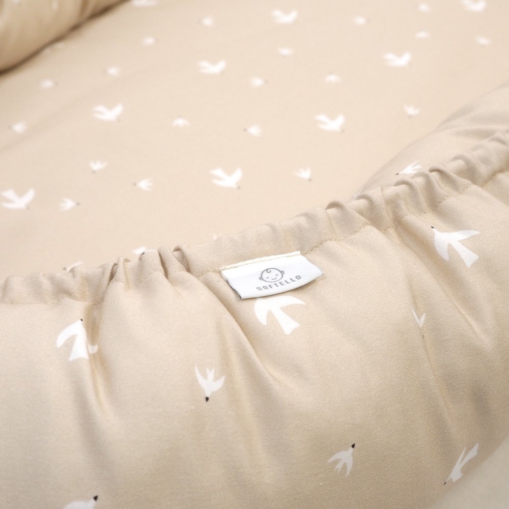 Hnízdo pro miminko SOFTELLO – béžový ptáčci je ztělesněním pohodlí, bezpečí a nadčasového designu. Vyrobeno z prémiového bavlněného saténu s naším originálním designem. Tento výjimečný materiál je v porovnání s klasickou bavlnou výrazně jemnější, hebčí a příjemnější na omak, takže vaše miminko se v něm bude cítit doslova jako v bavlnce.