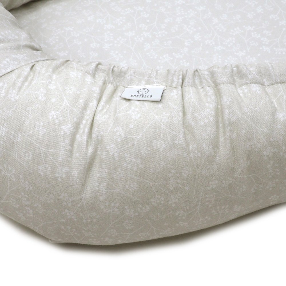 Hnízdo pro miminko SOFTELLO – ecru květinky je ztělesněním pohodlí, bezpečí a nadčasového designu. Vyrobeno z prémiového bavlněného saténu s naším originálním designem. Tento výjimečný materiál je v porovnání s klasickou bavlnou výrazně jemnější, hebčí a příjemnější na omak, takže vaše miminko se v něm bude cítit doslova jako v bavlnce.