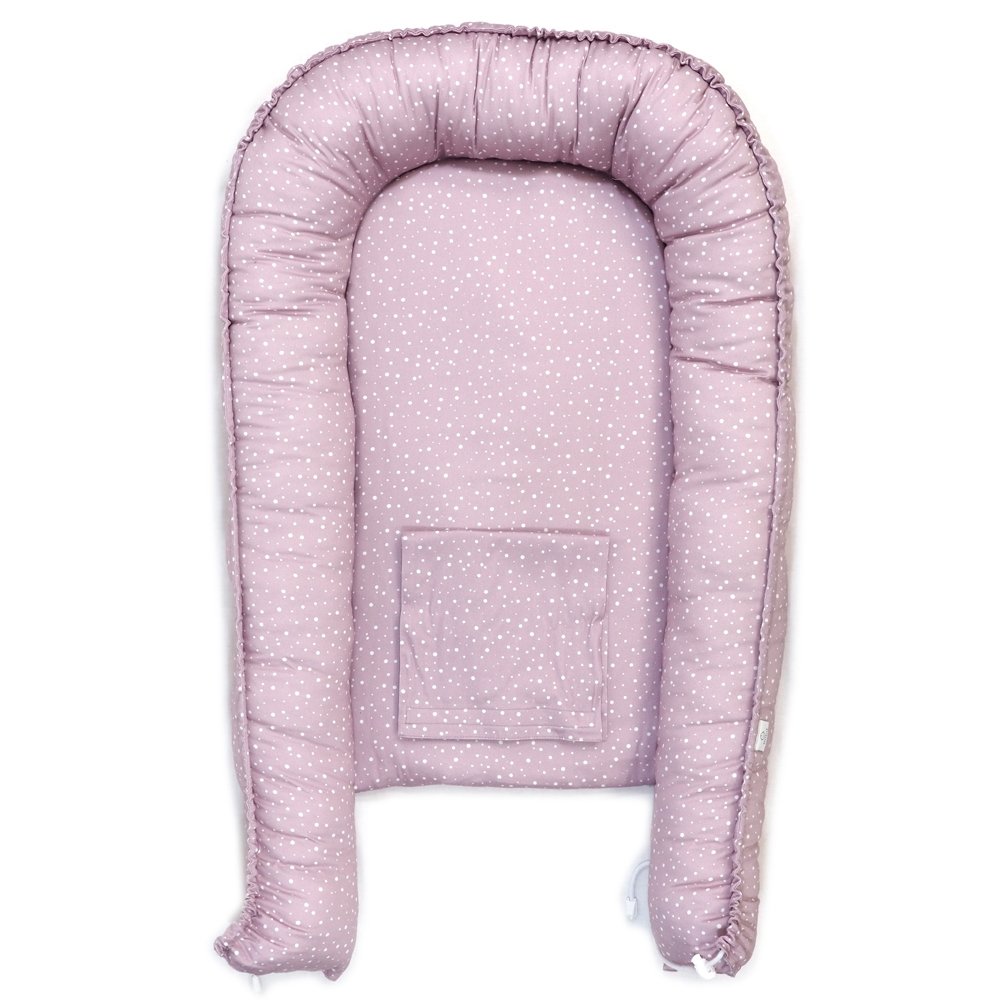 Hnízdo pro miminko SOFTELLO – fialová tečka vytváří pocit bezpečí a útulnosti již od narození. Prémiový bavlněný satén je mimořádně jemný, hnízdo roste s děťátkem, je nastavitelné, bezpečné a snadno udržovatelné.