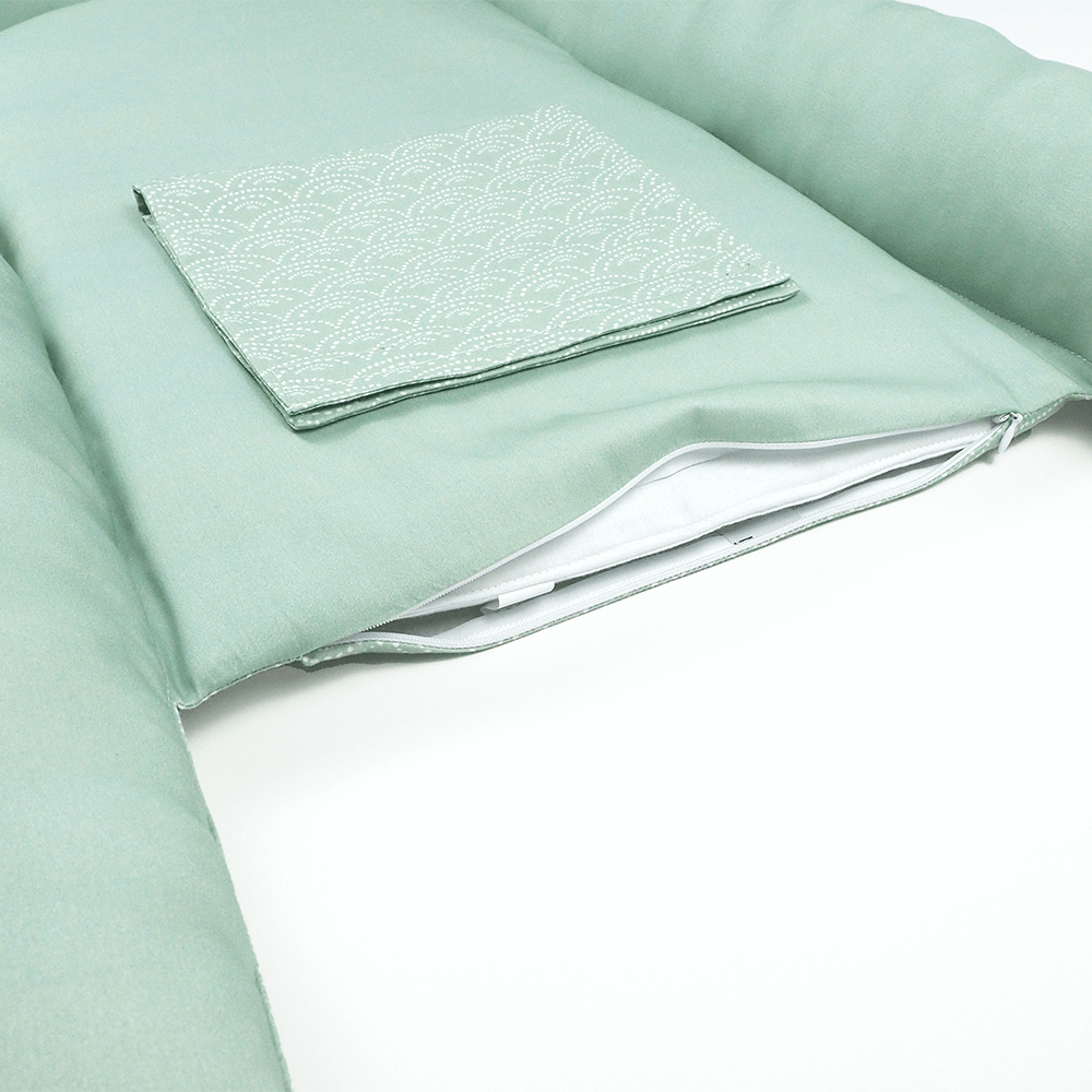 Hnízdo pro miminko SOFTELLO – mentolové obloučky MIX je ztělesněním pohodlí, bezpečí a nadčasového designu. Vyrobeno z prémiového bavlněného saténu s naším originálním designem. Tento výjimečný materiál je v porovnání s klasickou bavlnou výrazně jemnější, hebčí a příjemnější na omak, takže vaše miminko se v něm bude cítit doslova jako v bavlnce.