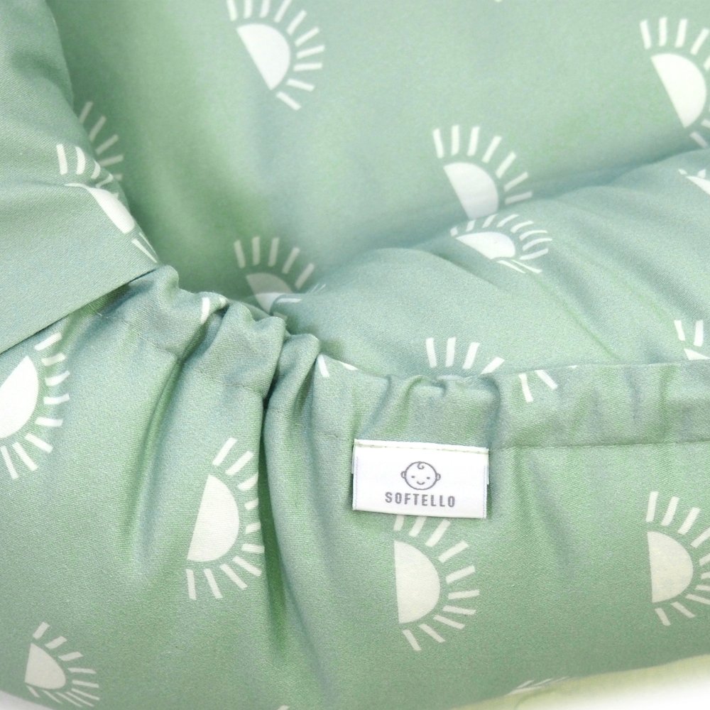 Hnízdo pro miminko SOFTELLO – mentolové půlslunce je ztělesněním pohodlí, bezpečí a nadčasového designu. Vyrobeno z prémiového bavlněného saténu s naším originálním designem. Tento výjimečný materiál je v porovnání s klasickou bavlnou výrazně jemnější, hebčí a příjemnější na omak, takže vaše miminko se v něm bude cítit doslova jako v bavlnce.