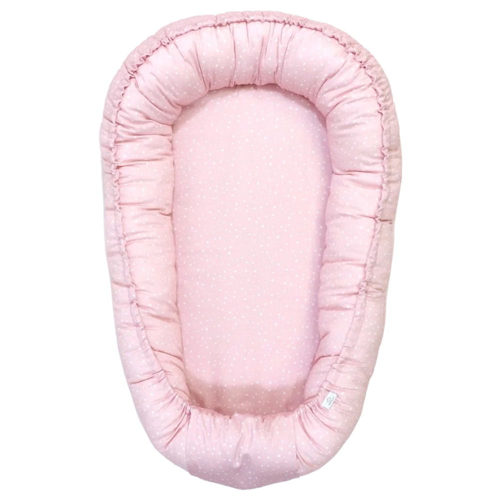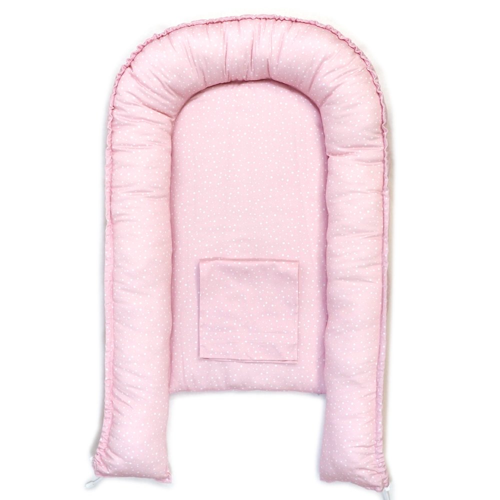 Hnízdo pro miminko SOFTELLO – světle růžová tečka je ztělesněním pohodlí, bezpečí a nadčasového designu. Vyrobeno z prémiového bavlněného saténu s naším originálním designem. Tento výjimečný materiál je v porovnání s klasickou bavlnou výrazně jemnější, hebčí a příjemnější na omak, takže vaše miminko se v něm bude cítit doslova jako v bavlnce.