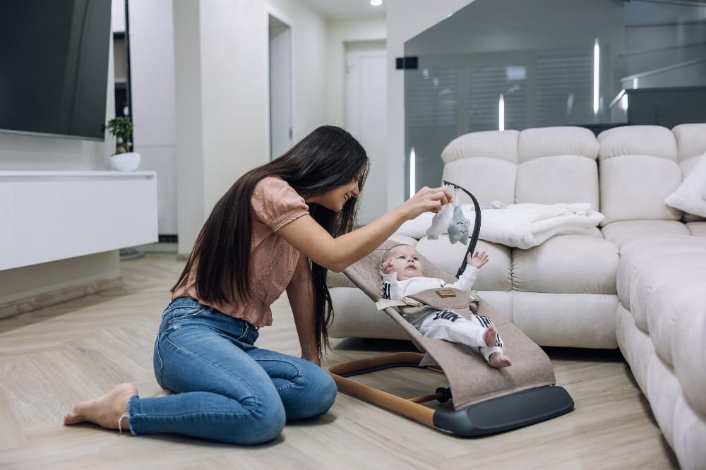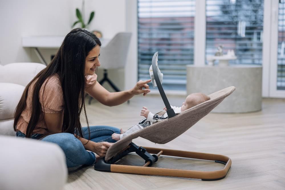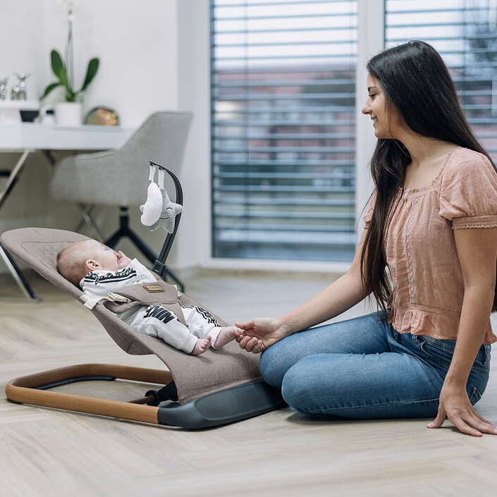 Má rám s dřevěným vzhledem a součástí je i hrazdička se dvěma hračkami. Díky měkké tkanině 300D melange, 3-bodovým bezpečnostním pásům a třem polohám sklopení bude vaše děťátko vždy bezpečně a pohodlně uloženo. Mezitím se můžete věnovat jiným úkolům a zároveň mít své děťátko nablízku a na dohled. Lehátko se jemně houpe na základě pohybů děťátka. Skládání je jednoduché a nejsou zapotřebí žádné baterie. Vhodné pro použití od narození do 9kg.