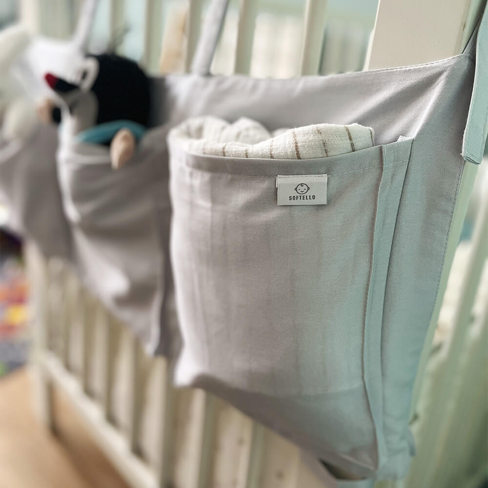 Elegantní světle šedá barva se snadno kombinuje s jakýmkoli interiérem a působí jemně a harmonicky. Kapsář lze jednoduše připevnit k posteli pomocí šňůrek na suchý zip, díky čemuž jej můžete kdykoli snadno svěsit a přemístit.