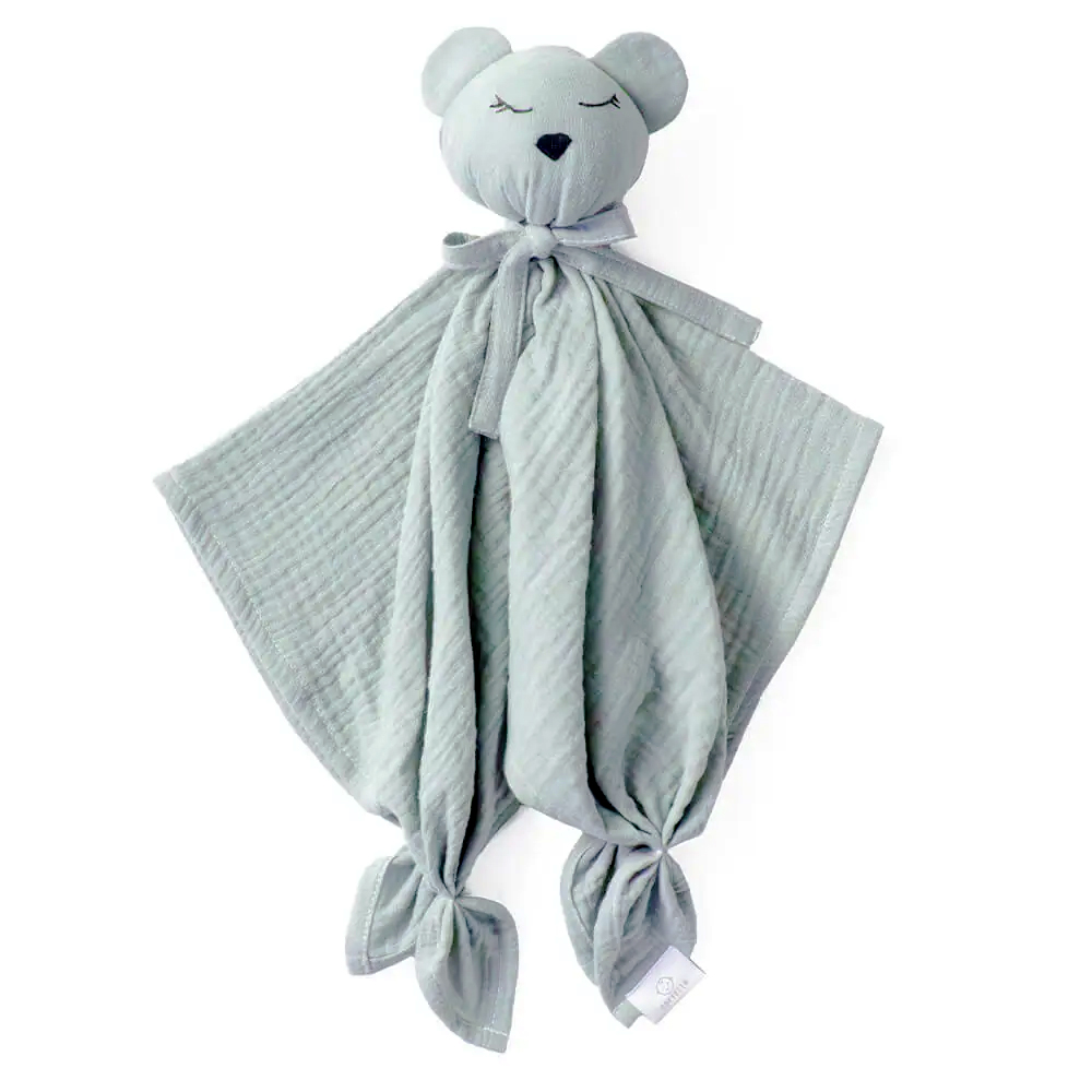 Mušelínový muchláček ve tvaru medvídka, vyroben z jemňoučkého šalvějového mušelínu se stane oblíbeným společníkem vašich miminek. Je možné jej kombinovat s kterýmkoliv dizajnem s naší ponuky. Mušelínový muchláček je oblíbenou hračkou při usínání, miminka si k nim často vytvářejí citový vztah. Mušelínový muchláček je výborným dárkem pro miminko.