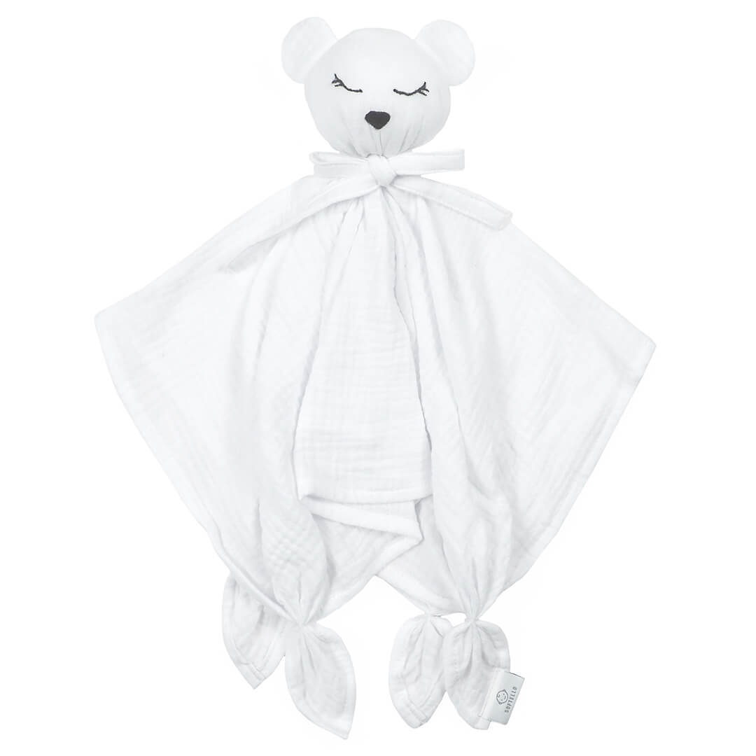 Mušelínový muchláček ve tvaru medvídka, vyroben z jemňoučkého bílého mušelínu se stane oblíbeným společníkem vašich miminek. Je možné jej kombinovat s kterýmkoliv dizajnem s naší ponuky. Mušelínový muchláček je oblíbenou hračkou při usínání, miminka si k nim často vytvářejí citový vztah. Mušelínový muchláček je výborným dárkem pro miminko.