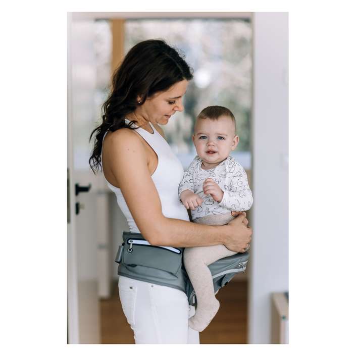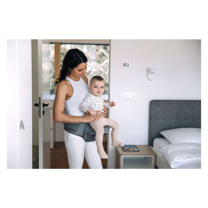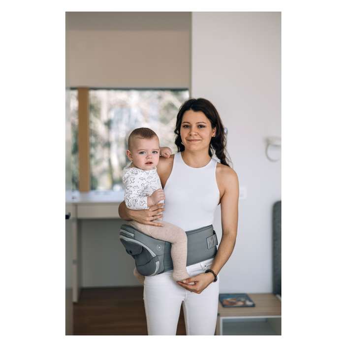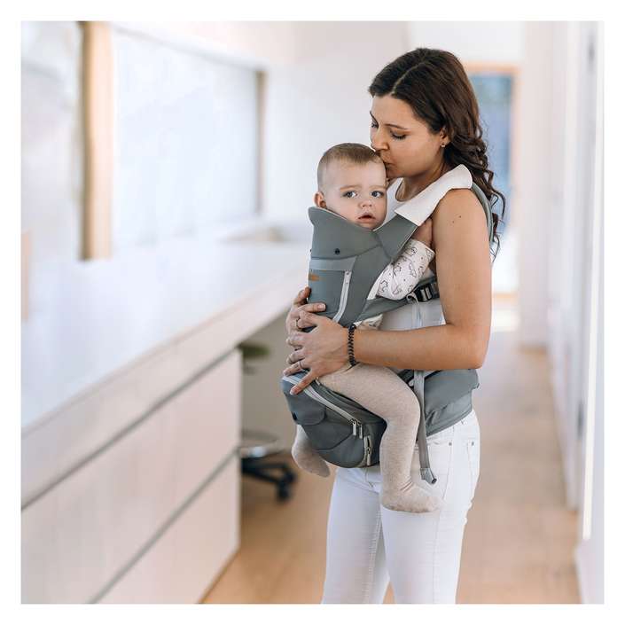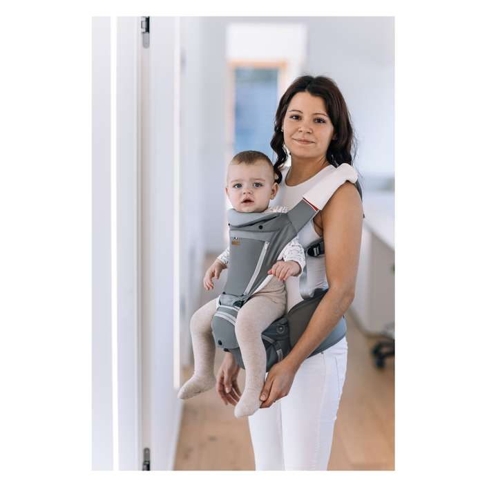 V prvních měsících, kdy se kyčle miminka teprve vyvíjejí, je nezbytné nosit děťátko ve správné poloze. Tato poloha je nejen nejlepší pro rozvoj boků a páteře, ale je také nejpohodlnější pro miminko, protože nožičky miminka zůstávají v ergonomické poloze. Opěrka hlavy zabraňuje kolísání hlavy.