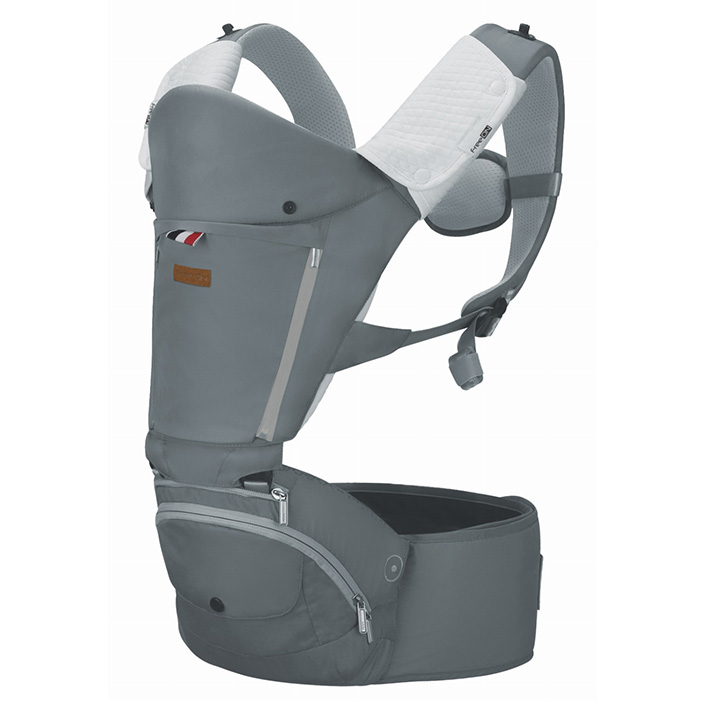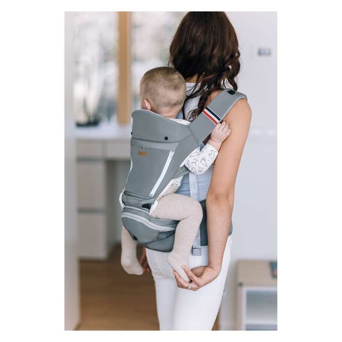 Nosič je extrémně lehký, sedací část je vyrobena z leteckého hliníku, který lze jednoduše složit. Materiál je měkký a pohodlný iv případě, že musíte děťátko nosit déle. Má přední kapsu pro lepší prodyšnost.