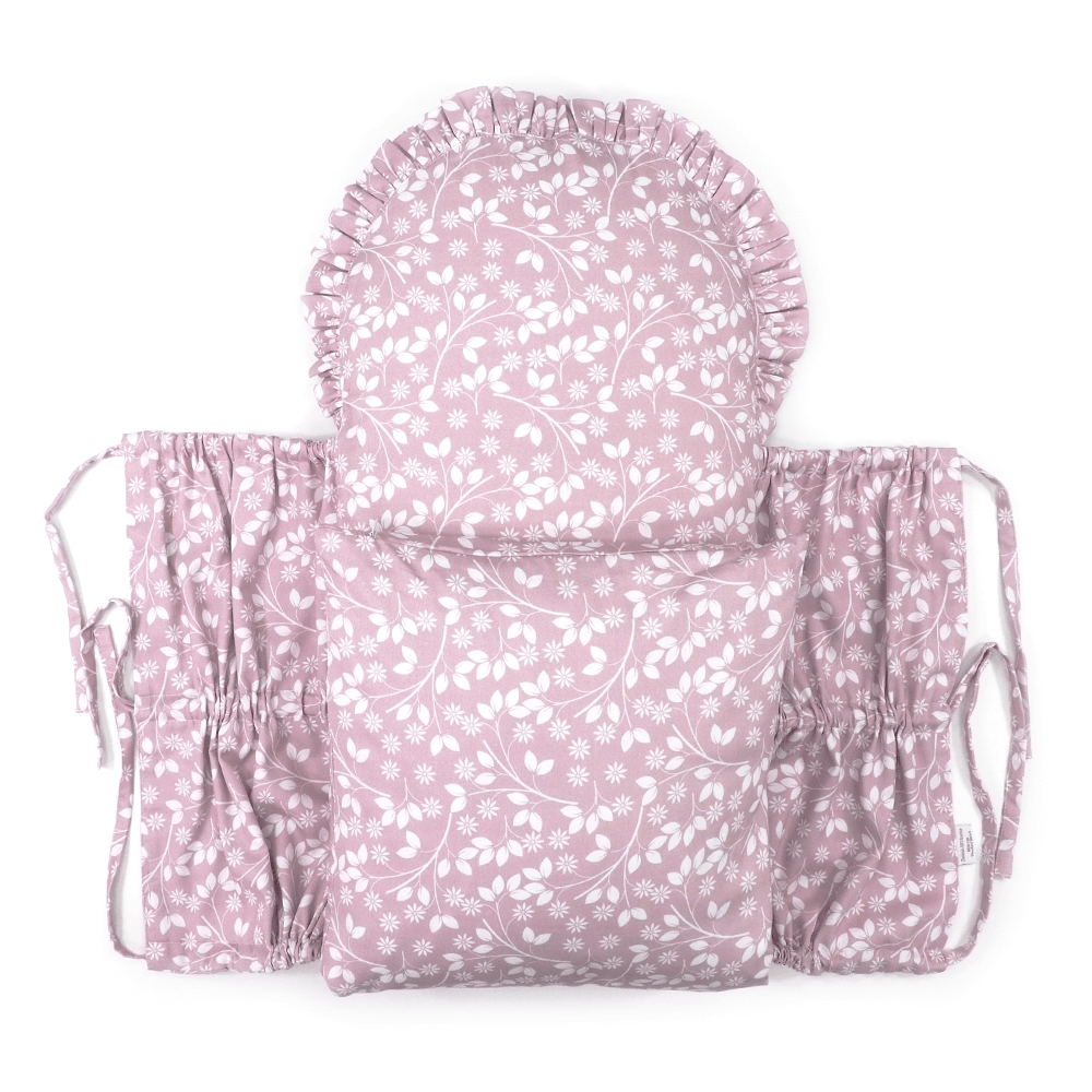 Peřinka má elegantní obdélníkový tvar se zaobleným okrajem, který zdobí jemný volánek. Zavazování na tři pevně všité šňůrky zaručí, že vše zůstane bezpečně na svém místě.