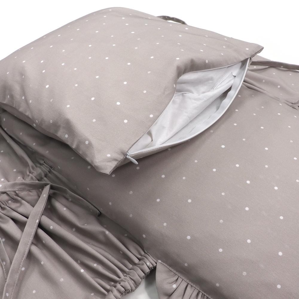 Peřinka SOFTELLO v designu šedohnědá tečka je vyrobena z prémiového bavlněného saténu s naším vlastním originálním designem. Materiál je mimořádně jemný, hladký na dotek a příjemný – ideální kombinace pro pohodlný spánek vašeho drobečka.