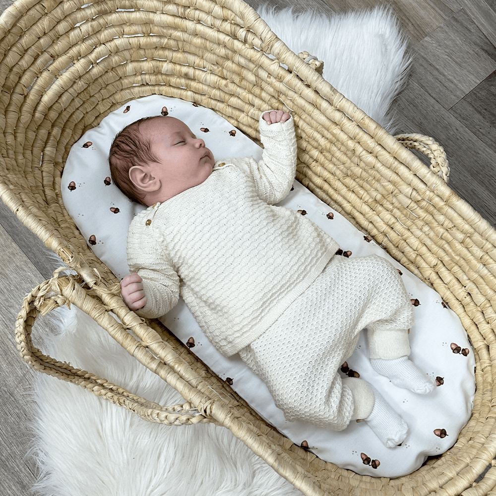 Plachta (návlek na matraci) do Mojžíšova koše Corn Natural v designu bílý podzim je vyrobena z kvalitního bavlněného saténu. Materiál je jemňoučký a pro vaše miminko velmi příjemný na dotek. Na spodní straně je zapínání na skrytý zip, pomocí kterého návlek jednoduše svlečete a operete.