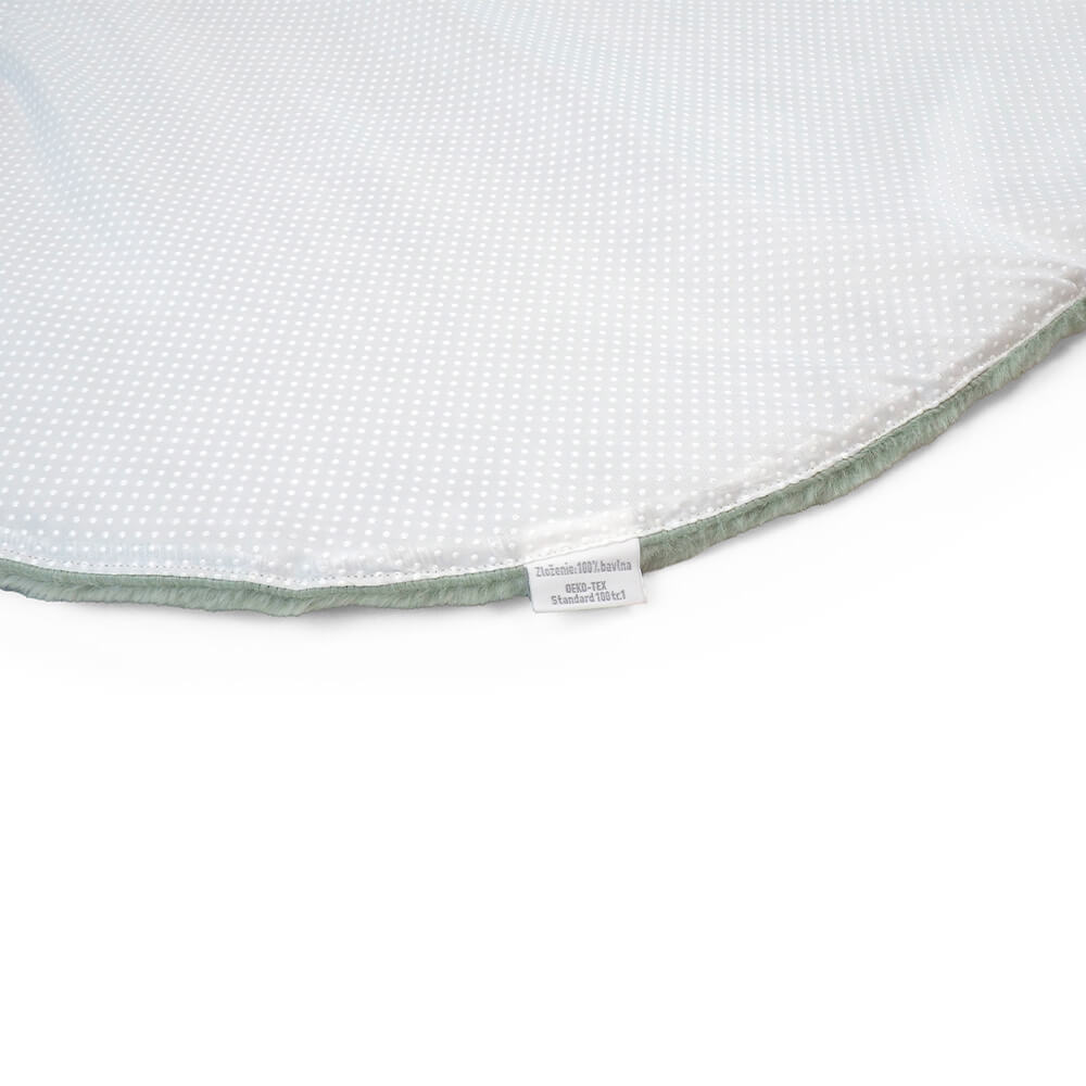 SOFTELLO kožešinková podložka na hraní v šalvějové barvě je krásným a praktickým doplňkem každého dětského pokojíčku. Je opravdu měkoučká a příjemná na dotek, takže vaše miminko se na ní bude cítit opravdu jako na obláčku. Vnitřek podložky je vyplněn certifikovanou netkanou textílií FLEXOTERM200, což zajišťuje dostatečnou měkkost podložky. Spodní strana je ušita z prostiskluzové tkaniny s PUL zátěrem, takže nemusíte mít obavu, že uklouznete. Sloužit může také jako kobereček k dětské postýlce, nebo i jako podložka na focení.