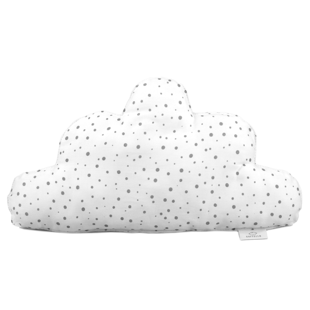 SOFTELLO polštářek oblak velký v dizajnu bílá tečka je skvělým doplňkem do každé postýlky. Polštářek je vyroben z jemňoučkého bavlněného saténu a vyplněn je certifikovaným kuličkovým dutým vláknem.