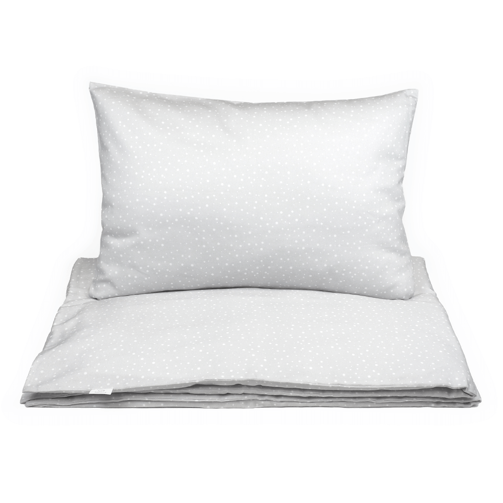 Povlečení v designu světle šedá tečka vnese do pokoje čistotu, jemnost a nadčasový šarm. Elegantní šedá se hodí do pokojíčků chlapců i dívek a snadno se kombinuje s jinými doplňky.