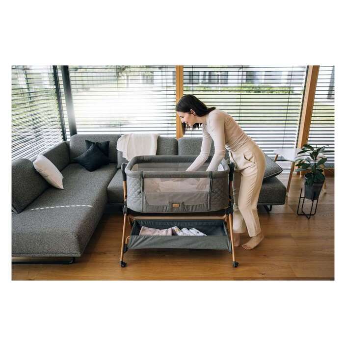 Půvabná přídavná postýlka pro miminko od zn. FreeON, kterou lze v několika krocích snadno proměnit na vysokou židli. Tento neuvěřitelně praktický produkt 2v1 bude vaším každodenním společníkem. Bočnici lze otevřít nebo spustit a pomocí přiložených koleček postýlku snadno umístit vedle vaší postele. Dá se použít i jako samostatná postýlka s bočnicemi vzhůru. Základnu postýlky lze nastavit do 3 různých výšek. Ve spodní části je praktická police pro uložení základní výbavy. Postýlku lze přeměnit na vysokou židli, když už může vaše děťátko sedět samostatně. Vysoká židle je dodávána se speciálním polštářem pro pohodlí při krmení a má odnímatelný podnos, který se snadno čistí. Bezpečnost a pohodlí zajišťuje 5-bodový bezpečnostní pás a opěrka nohou. Polička pod sedadlem je velmi praktická pro uložení příslušenství.