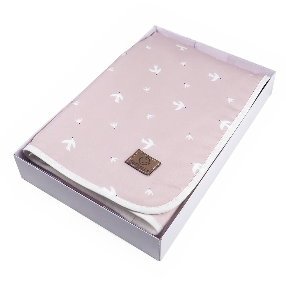 Dětská měkoučká saténová přikrývka s kožešinkou SOFTELLO v dizajnu tmavě růžový ptáčci je vyrobena z toho nejjemnějšího certifikovaného bavlněného saténu v kombinaci s měkoučkou kožešinkou. Je vhodná k přikrytí vašeho děťátka zejména během chladnějších dnů, například během odpoledního spánku v hnízdečku, postýlce, kočárku či autosedačce.