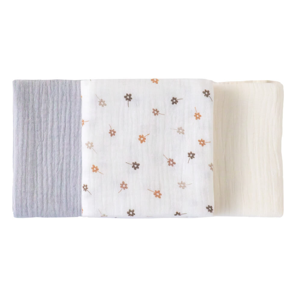 1× mušelínová plenka 50×50 cm – béžové květinky