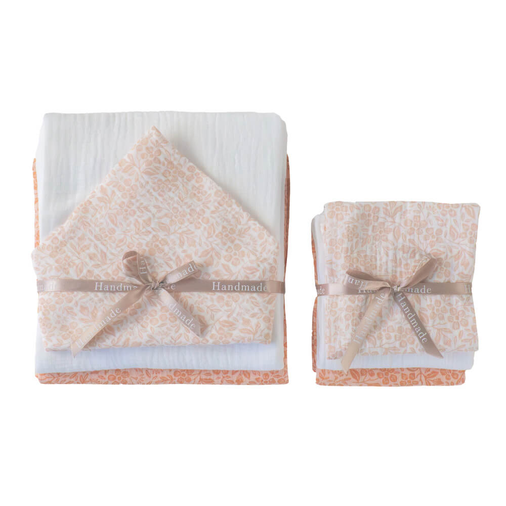 1× mušelínová plenka 50×50 cm – broskvové květinky