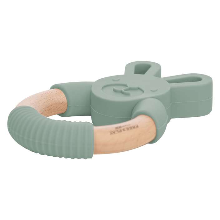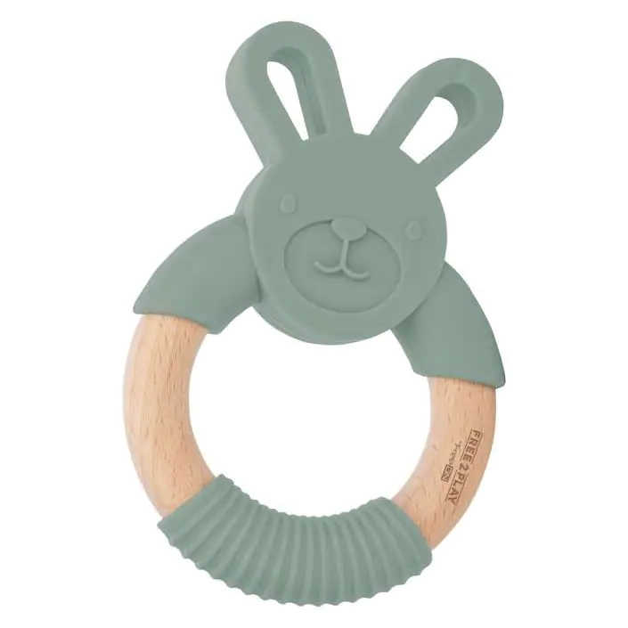 Kousátko je navrženo ve tvaru rozkošného zajíčka, aby upoutalo pozornost vašeho děťátka. Je vyroben z kombinace vysoce kvalitního potravinářského silikonu bez BPA, olova a ftalátů a vysoce kvalitního dřeva, díky čemuž je bezpečné pro používání již od narození. Jeho tvar je ideální pro uchopení malými ručičkami.