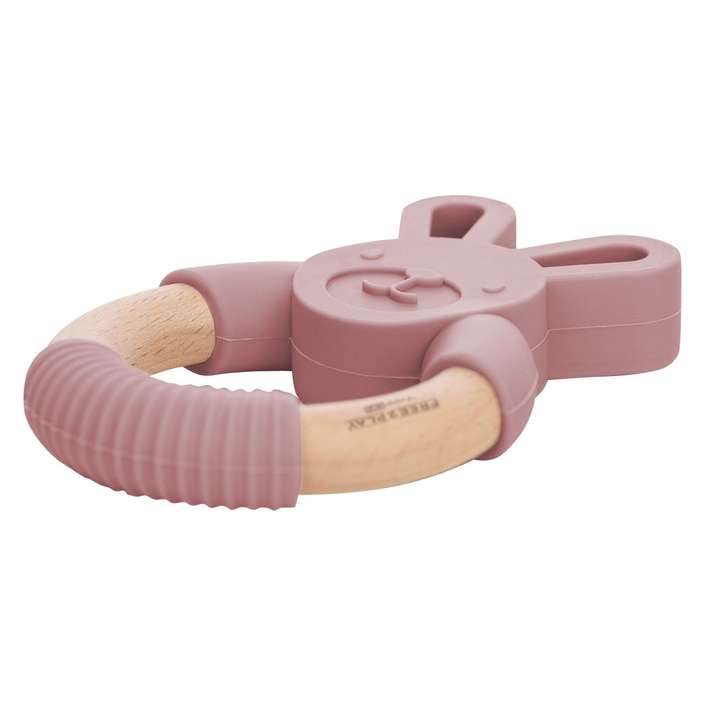 Kousátko je navrženo ve tvaru rozkošného zajíčka, aby upoutalo pozornost vašeho děťátka. Je vyroben z kombinace vysoce kvalitního potravinářského silikonu bez BPA, olova a ftalátů a vysoce kvalitního dřeva, díky čemuž je bezpečné pro používání již od narození. Jeho tvar je ideální pro uchopení malými ručičkami.