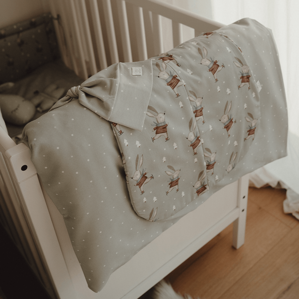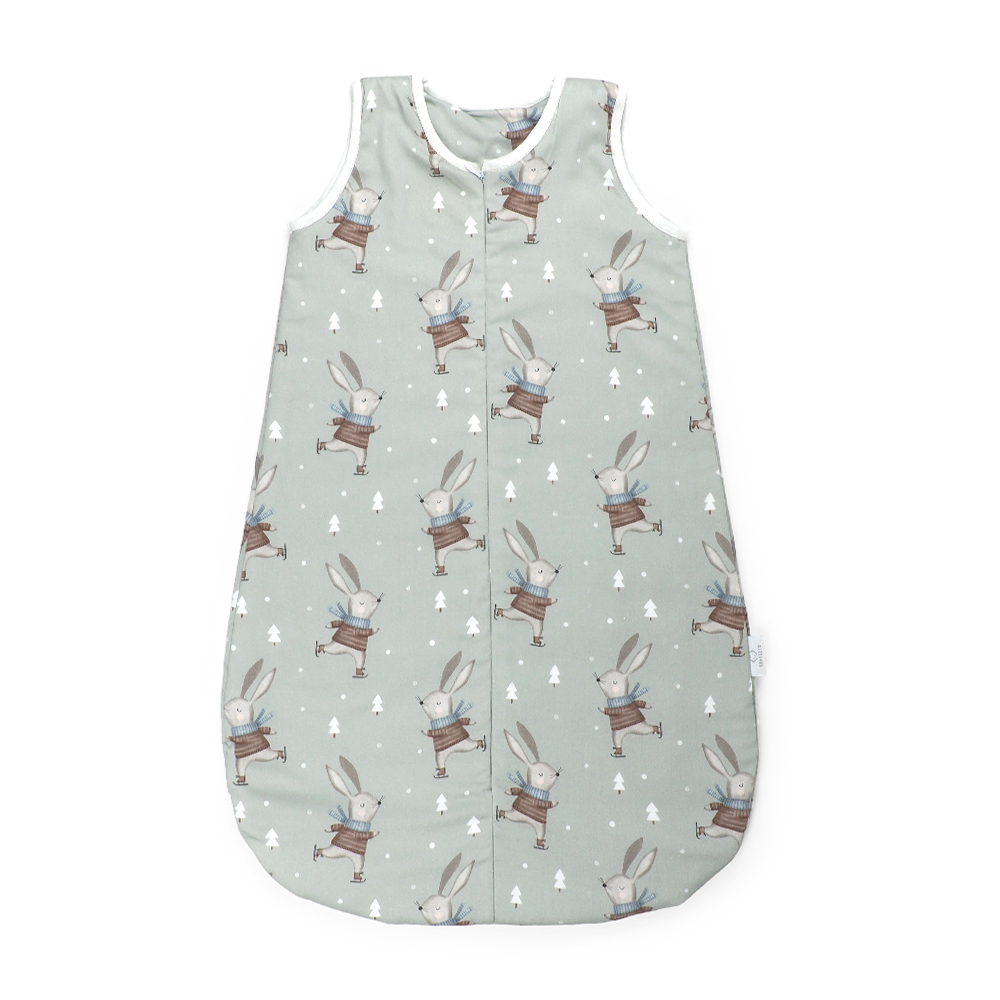 Spací pytel SOFTELLO v dizajnu šalvějový zimní králíček je vhodný pro miminka do 3-4 měsíců. Je vyroben z hebkého a jemňoučkého bavlněného saténu. Vnitřek tvoří certifikovaná netkaná textilie.  Jeho rozměr poskytuje dostatek prostoru pro nožičky a chrání tak vaše miminko před odekrytím.