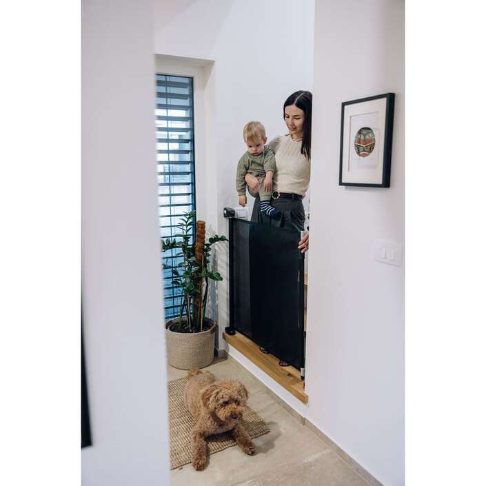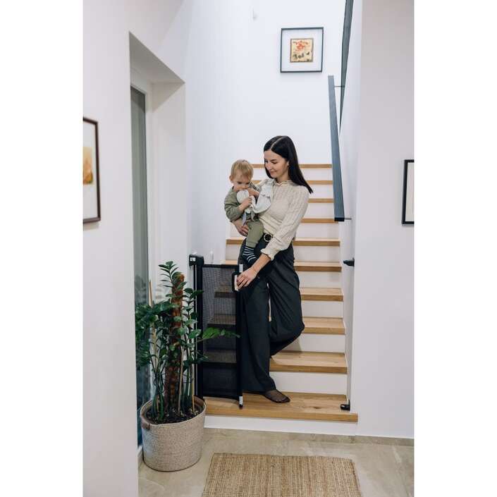 Velkou výhodou této zábrany je její praktičnost – když se nepoužívá, lze jednoduše srolovat a zůstává nenápadně složená, takže nenarušuje vzhled místnosti.