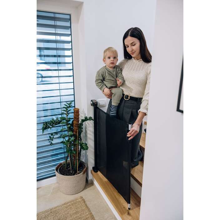 Dětská zábrana FreeON Sigma Retractable představuje ideální kombinaci bezpečnosti, snadného používání a elegantního designu. Je určena pro použití v interiéru, například na schodištích, v ložnicích, kuchyních či na chodbách.