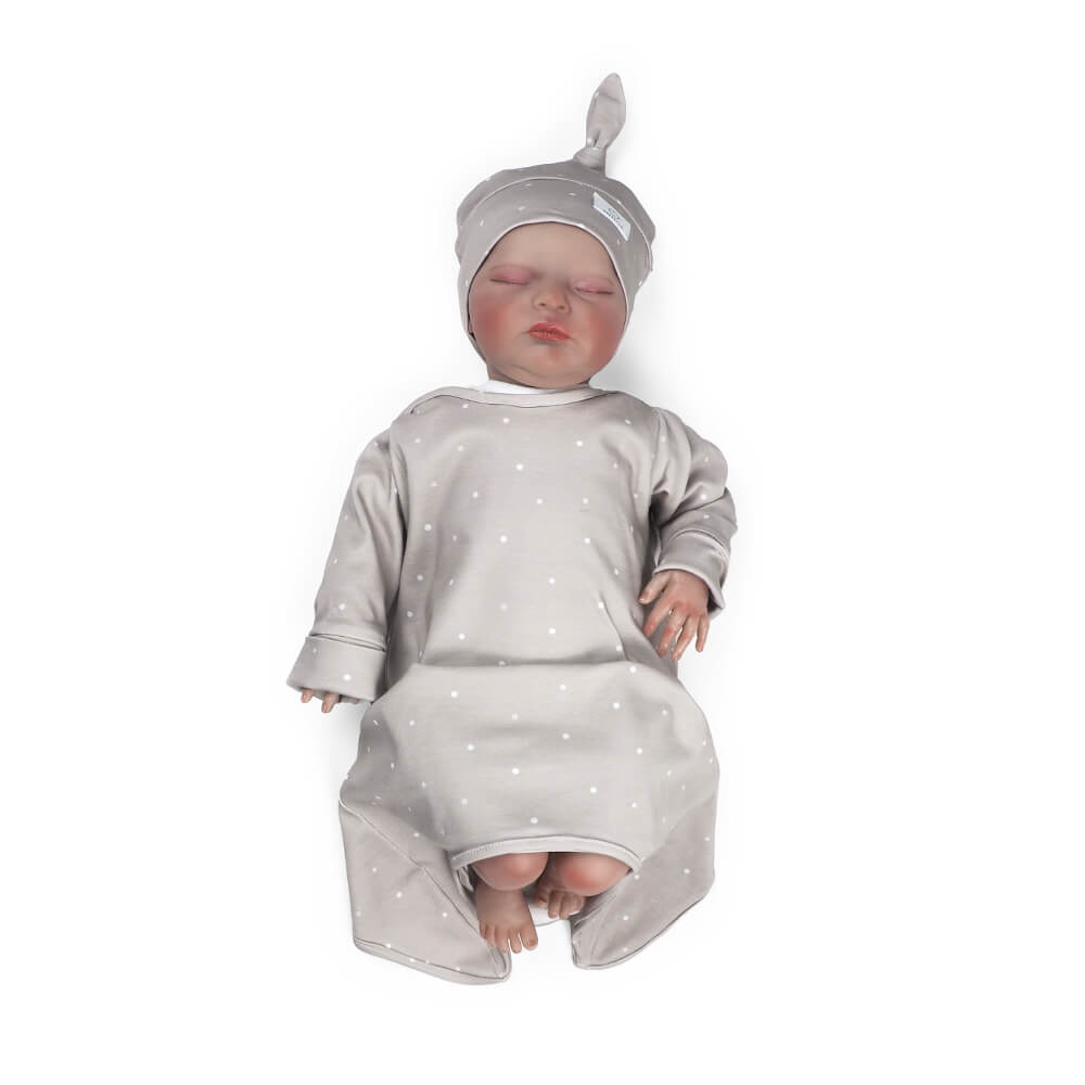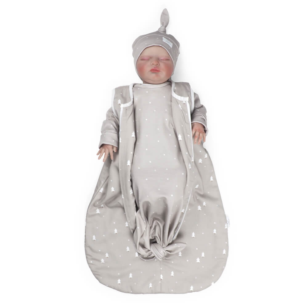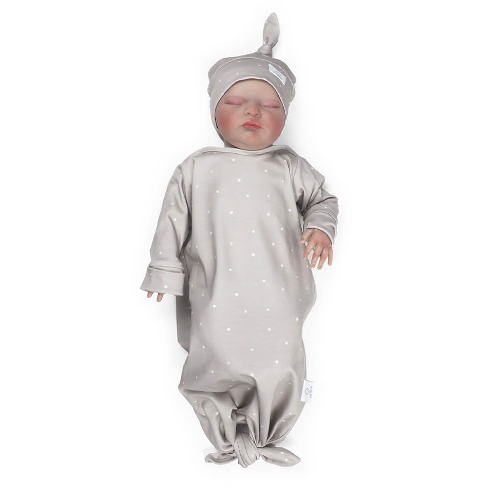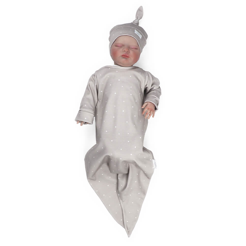 Novorozenecké zavazovací body SOFTELLO v dizajnu šedě hnědá tečka je praktickým kouskem do dětského šatníku. Jedno oblečení vám vystačí na den i noc. Body má praktické zavazování na uzel, takže přebalování miminka je opravdu jednoduché. Lze jej kombinovat s čepičkou ve stejném dizajnu, či spacím pytlem.
